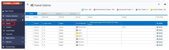 Digilog tüm hatların izlenmesini sağlayan bir ekrana sahiptir. Ekran üzerinde toplam hat kapasitesi, Tanımlama yapılan hat adeti, Görüşmedeki hatların adeti, Hazır durumdaki hatların adeti ve Alarmda olan hatların adetleri sistem tarafından anlık olarak verilmektedir.