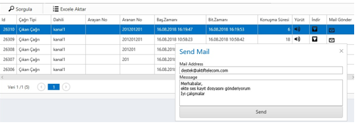 Kullanıcılar yetkileri dahilinde istedikleri ses kaydın pc’lerine indirmeksizin bir açıklama yazarak mail olarak sistem üzerinden gönderebilirler.