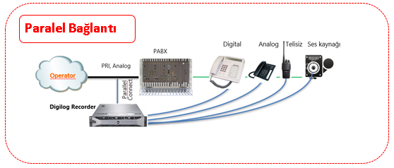 ActiveRecording entegrasyonu ile Pabx’deki farklı telefon tiplerinin tek bir ses kanalından alınması sağlanır.