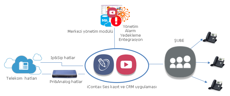 iContax,ın kurumun merkezindeki modüllerinin çalışma şekli kısa olarak aşağıda belirtilmiştir;