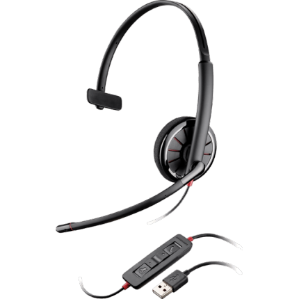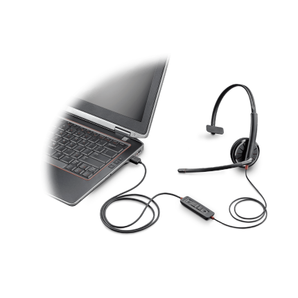 Tek kulağı kapatan, Blackwire 310, bir kulak çağrıda, diğeri çevre ile etkileşimde.